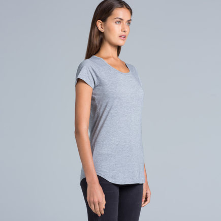 Curved hem, self-fabric binding on neck, side seamed, shoulder to shoulder tape, double needle hems, preshrunk to minimise shrinkag